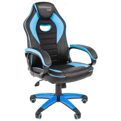 Кресло игровое Chairman "Game 16", экокожа черная/голубая, ткань TW черная, механизм качания