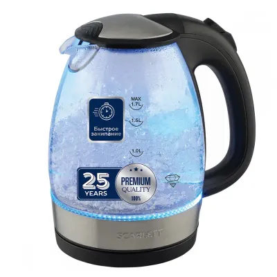 - УЦЕНКА - Чайник электрический Scarlett SC-EK27G91, 1,7л, 2200Вт, с подсветкой, стекло/пластик — какой бренд?