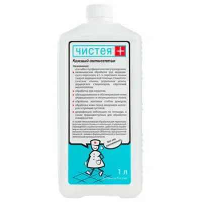 Антисептик для рук и поверхностей спиртовой (50%), 1 л, ЧИСТЕЯ ПЛЮС, дезинфицирующий, жидкость