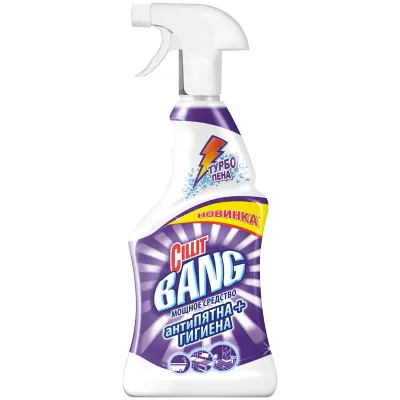- Цена на Средство чистящее Cillit Bang, антипятна+гигиена, спрей, с курком, 750мл составляет 538,37 рублей. При оптовом заказе цена от 479,64 рублей.