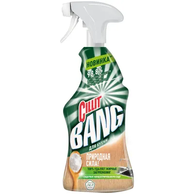 - Цена на Средство чистящее Cillit Bang "Природная сила" с содой, с курком, 450мл составляет 195,87 рублей. При оптовом заказе цена от 174,5 рублей.