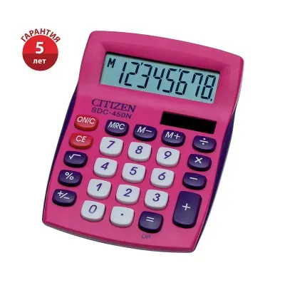 - Цена на Калькулятор настольный Citizen SDC-450NPKCFS, 8 разрядов, двойное питание, 87*120*22мм, розовый составляет 592,8 рублей. При оптовом заказе цена от 542,88 рублей.