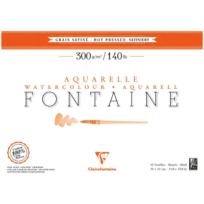 Альбом для акварели, 12л., 30*40, на склейке Clairefontaine "Fontaine Grain satiné", 300г/м2, горяч. пресс., сатин