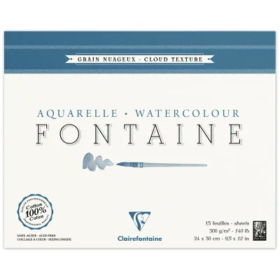 - Альбом для акварели, 15л., 24*30, на склейке Clairefontaine "Fontaine Grain Nuageux", 300г/м2, холод. пресс., облачная текстура — какой бренд?