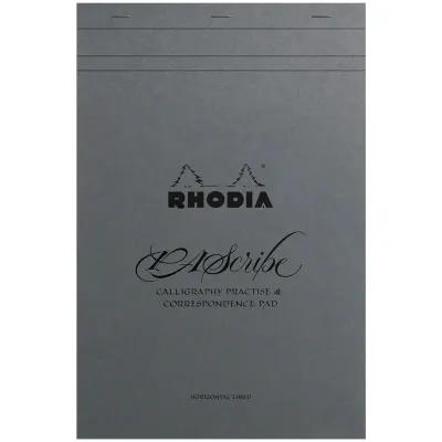 Блокнот Clairefontaine Rhodia для каллиграфии прекрасно подойдёт для контрастных работ. Формат: А4+. Обложка – мелованный прочный картон Maya серого цвета, плотностью 270 г/м2. Внутренний блок – серая бескислотная бумага Maya, плотностью 120г/м2. 60 листов в линию 6 мм с микроперфорацией на отрыв. Бумага имеет гладкую поверхность и позволяет использовать чернила, гарантируя быстрое высыхание. Блокнот имеет жёсткую подложку, что позволяет делать записи на ходу.