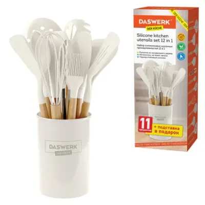- Набор силиконовых кухонных принадлежностей с деревянными ручками 12 в 1, молочный, DASWERK (ДАСВЕРК), 608193 — это продукция бренда DASWERK. В нашем магазине представлен широкий ассортимент товаров DASWERK.