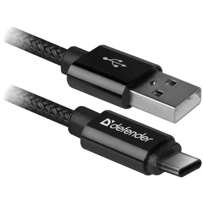Кабель Defender USB09-03T PRO USB(AM) - C Type, 2.1A output, в оплетке, 1m, черный