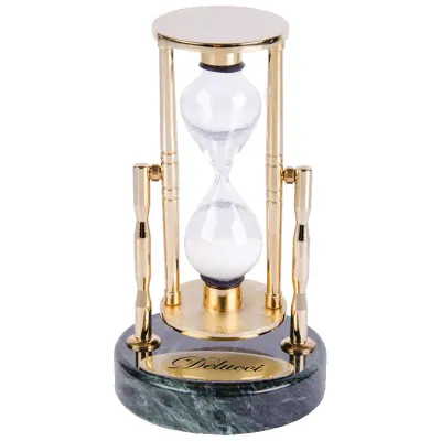 Настольные песочные часы на подставке из натурального зелёного мрамора. Отмеряемое время составляет 180 секунд