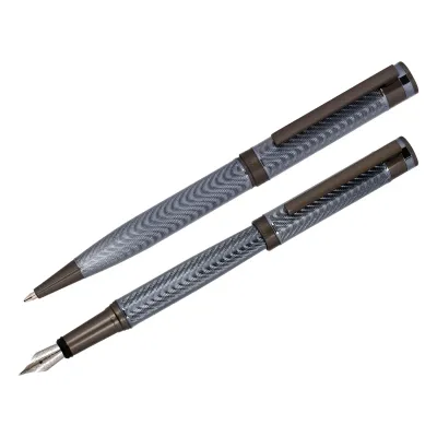 Набор Delucci Stellato – подарок для настоящих ценителей. Глянцевый корпус, волнообразный узор которого переливается благородным серебром, сразу привлечет к себе внимание и не оставит равнодушными даже самых притязательных. Хромированные элементы корпуса восстанавливают баланс строгости и стиля. Клип сделан из нержавеющей стали, он позволяет фиксировать ручки на ежедневниках, блокнотах и карманах одежды. Шариковая ручка из набора Delucci Stellato оснащена поворотным механизмом, внутри которого расположен пишущий стержень диаметром 1 мм, который идеально подходит для быстрого стиля письма. Перо перьевой ручки выполнено из иридия и отвечает за прочность и качество. Упакованы в кожаный футляр.
