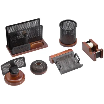 Набор настольный Delucci 6 предметов, темно-коричневый орех/черный металл