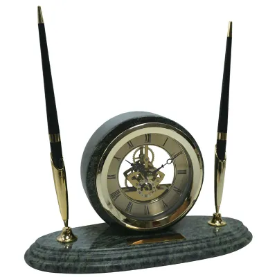 Подставка для двух ручек Delucci с часами, зеленый мрамор