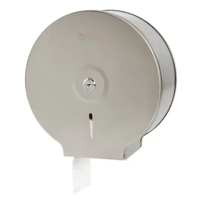 Антивандальный корпус изготовлен из нержавеющей стали. Предназначен для подачи профессиональной туалетной бумаги в рулонах с намоткой до 200 м. Обеспечивает высокий уровень гигиены и комфортную подачу туалетной бумаги. Имеется окошко для контроля остатка расходных материалов. Сочетается с расходными материалами других производителей. Оборудован замком с ключом. В комплект входят крепежные материалы для установки. Размер – 260х250х120 мм. Преимущества диспенсера для туалетной бумаги LAIMA PROFES