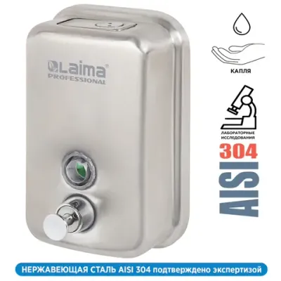 Дозатор для жидкого мыла LAIMA PROFESSIONAL INOX (гарантия 3 года), 0,5 л, нержавеющая сталь, матовый, 605396