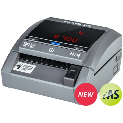 Оснащён модулем iAS интеллектуального антистокс-контроля. DORS 200 принимает банкноты в любом положении, кассиру не требуется специально подготавливать банкноты для работы с детектором. Дисплей имеет широкий угол обзора, информация отображается яркими, крупными цифрами, благодаря чему с устройством легко и комфортно работать кассирам всех возрастных групп. Разъёмный корпус на магнитных защёлках предоставляет лёгкий доступ к рабочему тракту прибора для чистки датчиков от бумажной пыли. Простое и быстрое обновление программного обеспечения через Internet. При необходимости DORS 200 может быть оснащен аккумулятором (опция не входит в комплект поставки), что позволит кассиру обслуживать клиентов повсеместно, не только в кассовой зоне