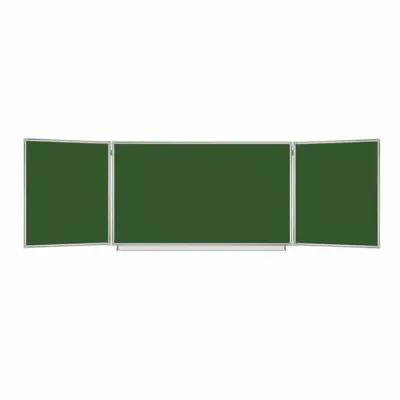 Доска для мела магнитная 3-х элементная 100х150/300 см, 5 рабочих поверхностей, зеленая, BRAUBERG, 231707