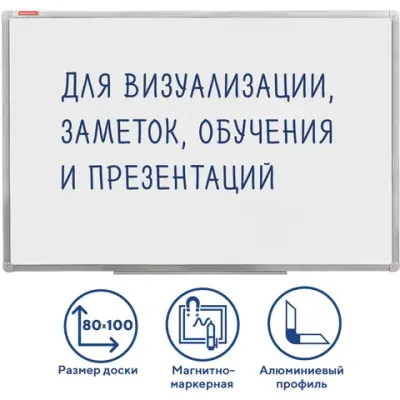 Доска магнитно-маркерная (80х100 см), алюминиевая рамка, ГАРАНТИЯ 10 ЛЕТ, РОССИЯ, BRAUBERG Стандарт, 236896