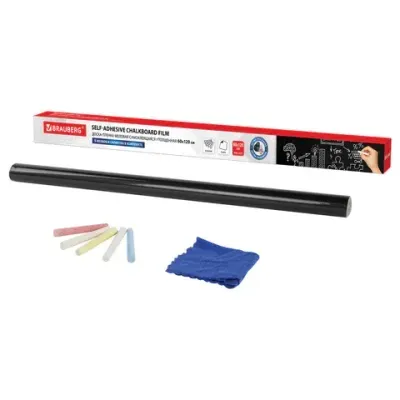 Доска-пленка меловая самоклеящаяся в рулоне, ЧЕРНАЯ, 60х120 см, 5 мелков и салфетка, BRAUBERG, 237838