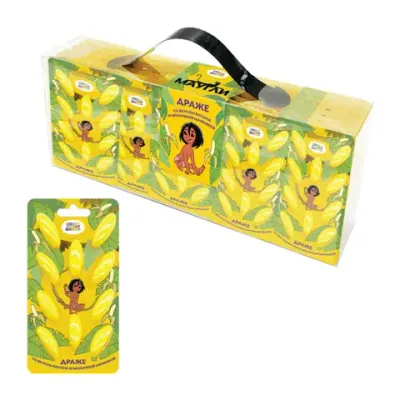 Драже со вкусом банана и молочной начинкой МАУГЛИ КОНФИТОЙ не оставит равнодушным ни одного сластену! В каждом блистере по 10 драже-бананов.