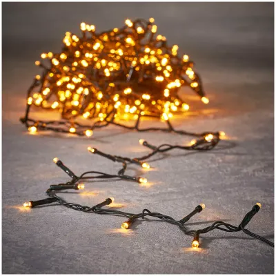 Электрогирлянда для улицы и дома светодиод. "String ligh" 192 ламп, тепл., на батарейках, 14,4м, цвет провода зеленый, питание от батареек.