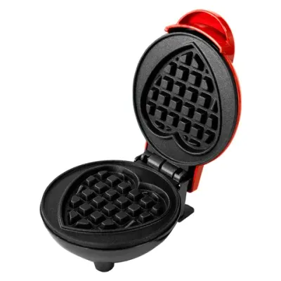 Антипригарное покрытие и встроенный нагревательный элемент мощностью 350 Вт обеспечивают равномерное приготовление вафли в форме сердца. Вафельница оснащена защитой от перегрева, что обеспечивает безопасность при ее эксплуатации. Система термостата и индикатор нагрева регулируют температуру автоматически – достаточно просто подключить прибор, дождаться оптимального нагрева и залить тесто. Благодаря компактному размеру электрическую вафельницу DASWERK удобно хранить.