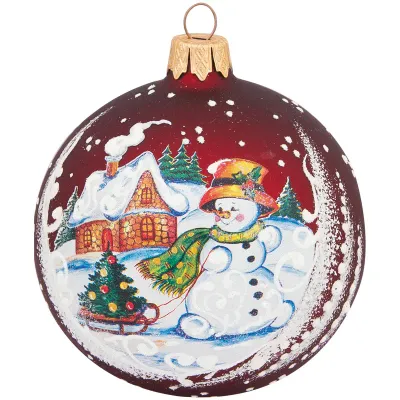 Шар стеклянный " Снеговик с елкой" 85мм, подарочная упаковка
