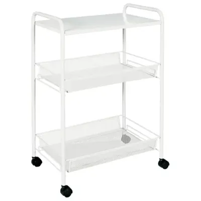Этажерка офисно-бытовая "Ладья-33КС", 650х450х300 мм, 2 яруса + столик, металл, белая, Э 356 Б