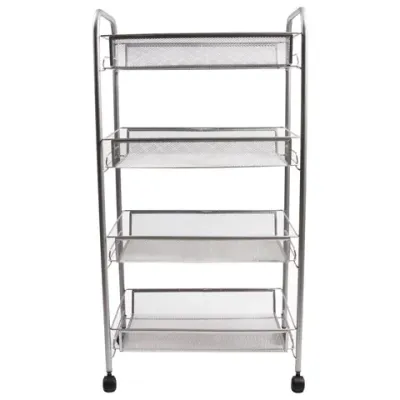 Этажерка (тележка) BRABIX офисно-бытовая 4 яруса, на колесах, металл, серебристая, 43,5х26х83,5 см, 603754