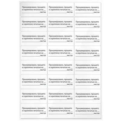 - Сколько стоит Этикетка самоклеящаяся "Пронумеровано, прошито и скреплено", 70х37 мм, 24 этикетки, 10 листов, 128833?