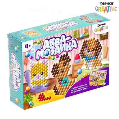 Аквамозаика с декорациями Эврики "Зверята", картонная коробка