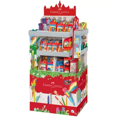 Демонстрационное оборудование из картона для размещения товаров бренда Faber Castell в торговых заллах . 3 яруса . Выкладка товара по всему периметру.