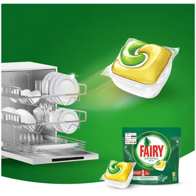 Капсулы для посудомоечной машины Fairy идеально отмывают посуду со сложными загрязнениями с 1-го раза. Fairy Original содержит гель и порошок в одной капсуле, с добавлением соли и ополаскивателя, а так же с защитой стекла и серебра. Капсула растворяется гораздо быстрее, чем другие таблетки для посудомоечной машины, и поэтому начинает действовать немедленно. Капсулы Fairy очень просты в использовании - просто поместите их в посудомоечную машину (не нужно распаковывать). Идеально справляется с засохшей и пригоревшей грязью, очистят даже самые сложные загрязнения. Сохраняет приятный запах в посудомоечной машине. Произведено и протестировано для использования во всех посудомоечных машинах. Готовы к использованию. Состав: 5-15% анионные поверхностно-активные, отбеливающие агенты на основе кислорода, <5% фосфонатная, поликарбоксилаты, ферменты, аромат, Citronellol, лимонен, линалоол.