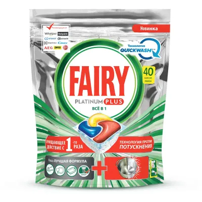 - Капсулы для посудомоечной машины Fairy "Platinum Plus. All in 1. Лимон", 40шт. — это продукция бренда Fairy. В нашем магазине представлен широкий ассортимент товаров Fairy.