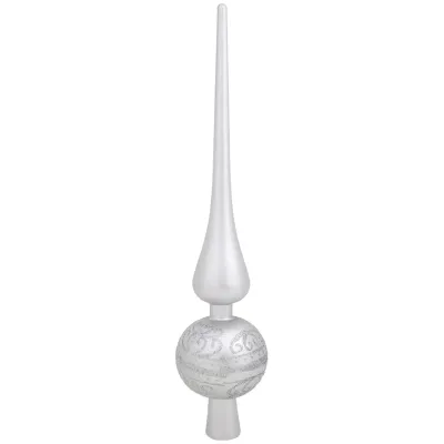 Завершенный образ новогоднему убранству ёлки можно придать, разместив на ее верхушке нарядный наконечник в форме пики. Это традиционный вариант украшения верхней части дерева, придающий ему правильную форму. Верхушка моментально приковывает к себе взгляды, ведь именно сверху вниз мы обычно рассматриваем предметы. Наконечник выполнен из полистирола - плотного небьющегося материала. Для оформления выбран классический серебряный цвет, что позволяет с легкостью сочетать верхушку елки с другими элементами декора. Новогоднее украшение-верхушка имеет размер 10,5 х 5,8 х 31 см.