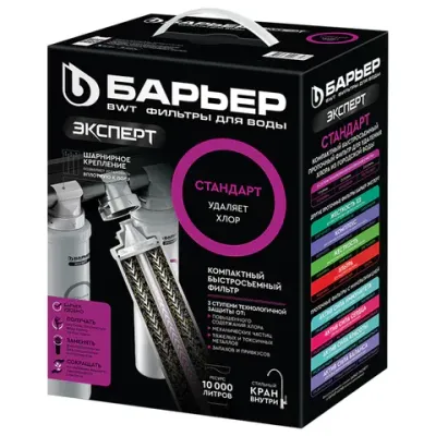 - Фильтр для воды БАРЬЕР "Эксперт Стандарт", для холодной воды, 3 ступени, ресурс 10000 л, кран в комплекте, Н211Р06 — это продукция бренда БАРЬЕР. В нашем магазине представлен широкий ассортимент товаров БАРЬЕР.