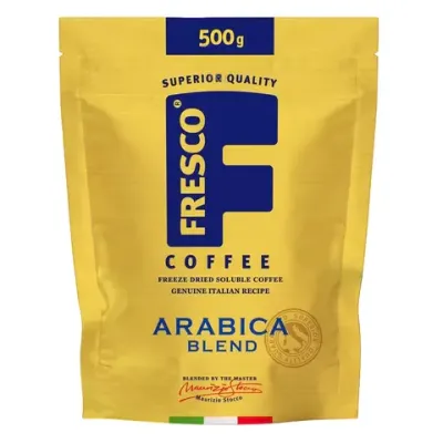 - Кофе растворимый FRESCO "Arabica Blend", сублимированный, 500 г, мягкая упаковка — это продукция бренда FRESCO. В нашем магазине представлен широкий ассортимент товаров FRESCO.