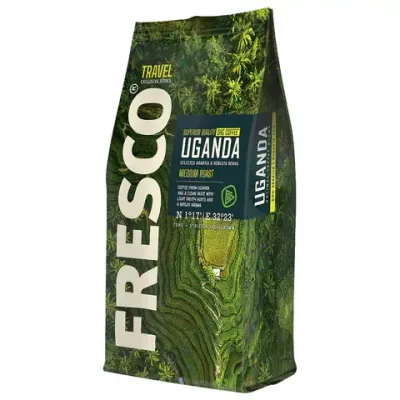 Натуральный кофе в зернах FRESCO "Uganda". Кофе из Уганды обладает чистым вкусом с легкими фруктовыми нотками и ярким, насыщенным ароматом.