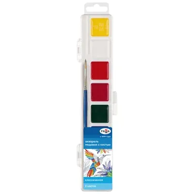 - Основные характеристики Акварель Гамма "Классическая", медовая, 08 цветов, с кистью, пластик. упак., европодвес NEW: Количество цветов: 8, Назначение: Для творчества, Тип: Акварель, Емкость: Кювета. Полный список характеристик доступен на странице товара.