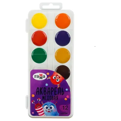 - Акварель ГАММА "Monsters", медовая, 12 цветов, без кисти, пластик, европодвес — это продукция бренда Гамма. В нашем магазине представлен широкий ассортимент товаров Гамма.