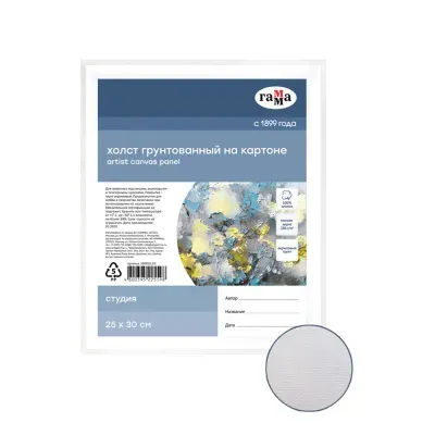 - Цена на Холст на картоне Гамма "Студия", 25*30см, 100% хлопок, 280г/м2, мелкое зерно составляет 128,46 рублей. При оптовом заказе цена от 111,66 рублей.