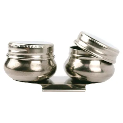 Металлическая двойная масленка ГАММА серии «Студия» – вспомогательный аксессуар художника, в котором удобно хранить, смешивать и использовать вспомогательные средства для живописи. Диаметр каждого резервуара 4,5 см. С помощью специальной клипсы маслёнку удобно крепить на палитру. Плотная крышка на маслёнке позволяет уменьшить расход вспомогательных средств и сохранит их до следующего использования. В двойной масленке удобно использовать несколько жидкостей одновременно.
