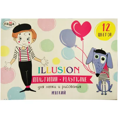 - Основные характеристики Пластилин Гамма "Illusion", 12 цветов, 168г, картон: Цвет: Ассорти, Количество цветов: 12, Набор: Да, Блестки/глиттер: Нет. Полный список характеристик доступен на странице товара.