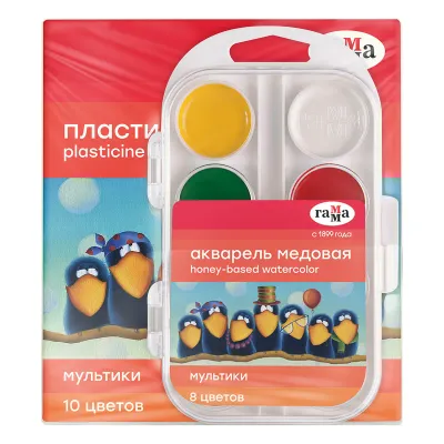 - Пластилин "Мультики", 10 цветов, акварель медовая "Мультики", 08 цветов — это продукция бренда Гамма. В нашем магазине представлен широкий ассортимент товаров Гамма.