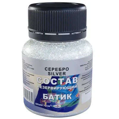 - Основные характеристики Состав резервирующий Гамма "Батик", серебро, 70мл: Тип: Резервирующий состав, Емкость: Баночка, Морозоустойчивость: Нет, Объем емкости: 70 мл. Полный список характеристик доступен на странице товара.