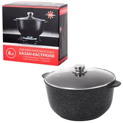 Кастрюля 6 л с жаропрочной крышкой, пятислойное антипригарное покрытие, ГАРДАРИКА "Орион", 1706-04-10