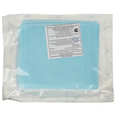 Стерильная одноразовая простыня из нетканого материала спанбонд в индивидуальной упаковке.