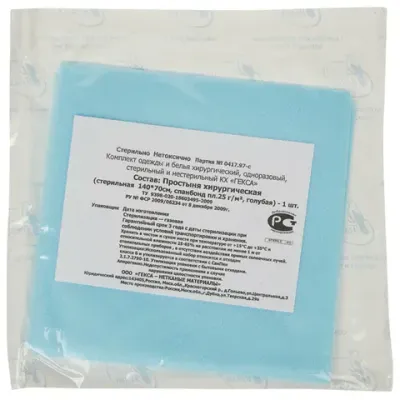 - Сколько стоит Простыня голубая стерильная 70х140 см, спанбонд 25 г/м2, ГЕКСА?