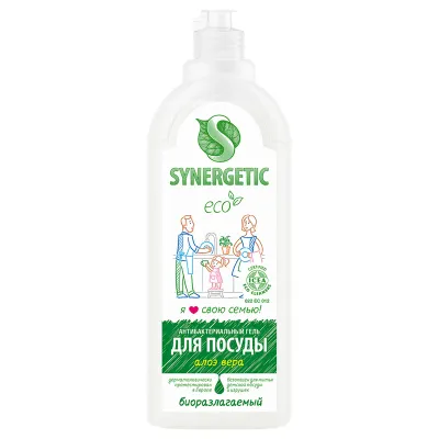 Гель для мытья посуды биоразлагаемый 1 л, SYNERGETIC "Алоэ", флип-топ, 103103/8