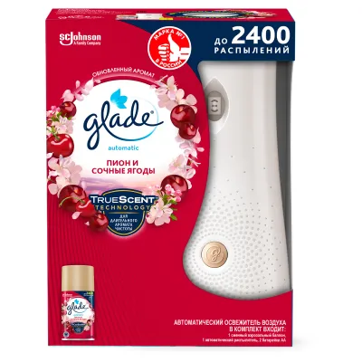 Освежитель воздуха автоматический, 269 мл, GLADE, диспенсер+сменный баллон, "Пион и сочные ягоды"