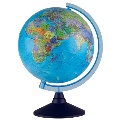 Глобус позволит ознакомиться с политической картой мира. Подходит для использования в детских садах и школах. Поможет узнать об организационно-правовом (политическом) укладе территорий, показывает сухопутные и морские границы государств и их столицы.