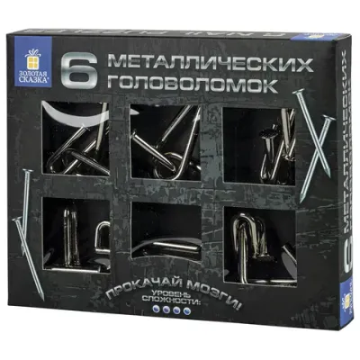 - Основные характеристики Головоломки металлические большие ЗОЛОТАЯ СКАЗКА, набор 6 штук, ГВОЗДИ, 664925: Материал: металл, Цвет: светло-серый, Тип товара: головоломка, Серия: Metal puzzle. Полный список характеристик доступен на странице товара.